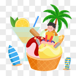 手绘卡通夏天小男孩坐在饮料杯上元素