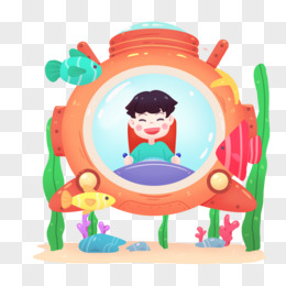 卡通插画风炎日降暑小朋友吹风扇免抠元素