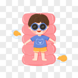 卡通手绘可爱晒日光浴的小男孩插画元素