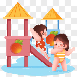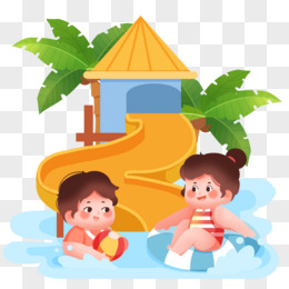 一组创意插画夏季玩水打水仗水上乐园元素合集一