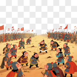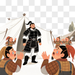 手绘卡通成语故事破釜沉舟免抠元素