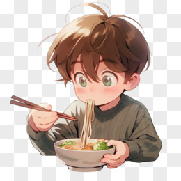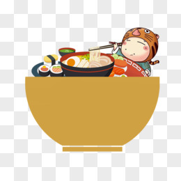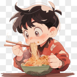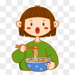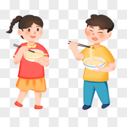 卡通手绘小姐姐和小弟弟吃面免抠元素