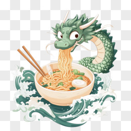 卡通手绘翠绿色衣服的小男孩吃面元素