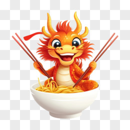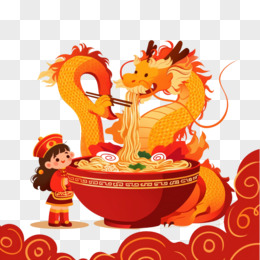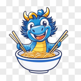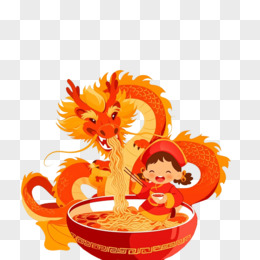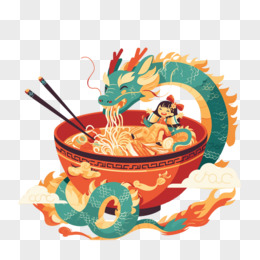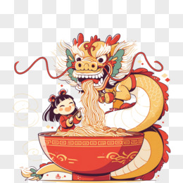 手绘卡通女孩冬天拿筷子吃拉面免抠元素
