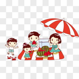 卡通手绘女孩坐在码头上开心吃西瓜免抠元素