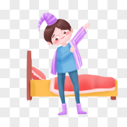 手绘卡通男生早起起床素材