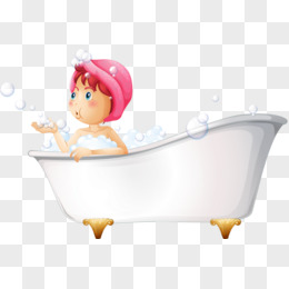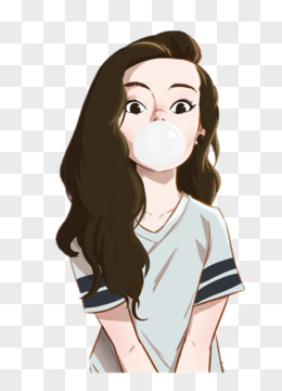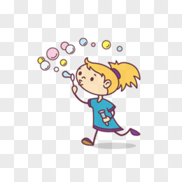 卡通一个小女儿拿着吸管吹泡泡免抠元素
