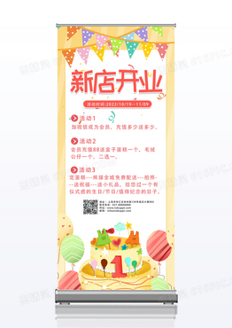 简约卡通蛋糕店新店开业宣传易拉宝蛋糕店蛋糕店开业易拉宝易拉宝