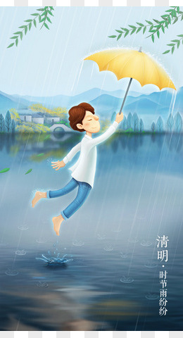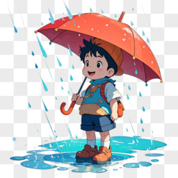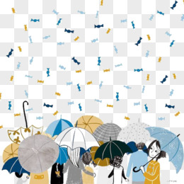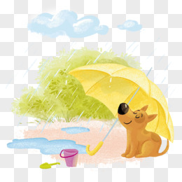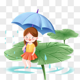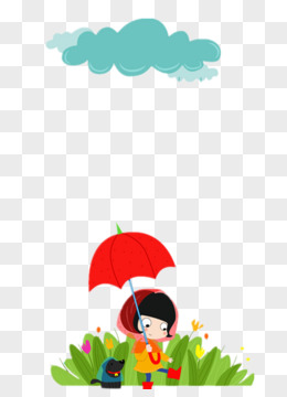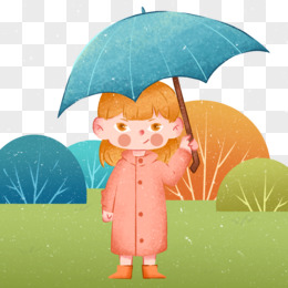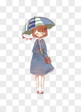 卡通手绘女孩雨天打伞撑伞免抠元素