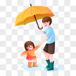 手绘插画风妈妈抱小孩撑大伞挡雨免抠元素