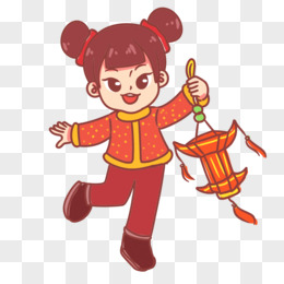 手绘卡通春节拿灯笼的女孩子