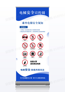 插画渐变彩色电梯安全宣传周电梯安全x展架