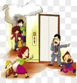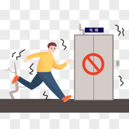 手绘卡通地震不坐电梯素材