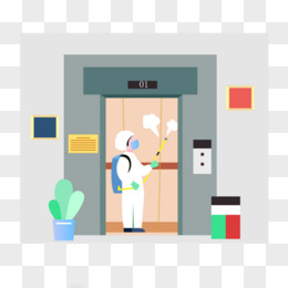 卡通电梯间消毒免抠元素