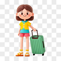 3D出发旅行玩偶女孩拿着行李旅游小元素扁平可爱点缀免抠元素