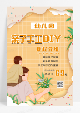 黄色卡通幼儿园亲子手工DIY海报