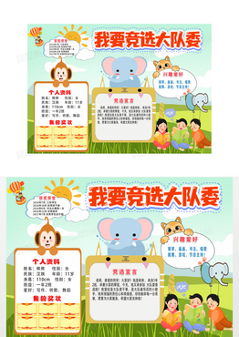 创意卡通动物我最棒请投我一票我要参加大队委竞选小学生竞选