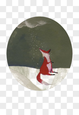 手绘冬日雪景小狐狸滑雪溜冰素材