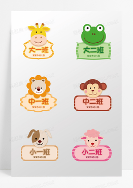 卡通动物头像大班中班小班手举牌班级手举牌彩色异形