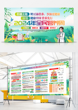 绿色卡通2024年全民营养周宣传展板