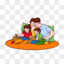手绘卡通家长陪孩子一起阅读看书免抠元素