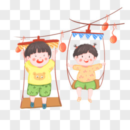 卡通手绘儿童一起在游乐场玩耍免抠元素