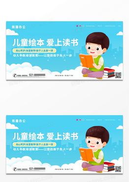 蓝色大气创意儿童绘本爱上读书幼儿早教展板