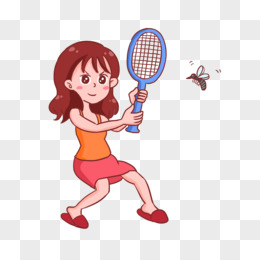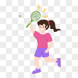 手绘卡通女孩电蚊拍打蚊子免抠元素
