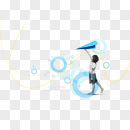 卡通插画人物纸飞机