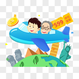 飞机父子旅游卡通素材