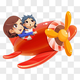 红色飞机卡通女孩