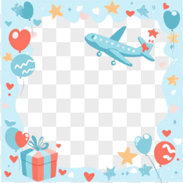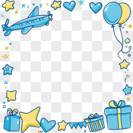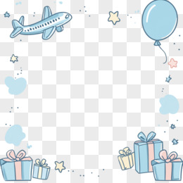 可爱卡通礼物飞机边框免抠元素