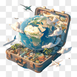3D卡通打开的行李箱里有一个地球免抠元素