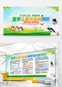 绿色卡通风2022年夏季儿童传染病预防宣传栏