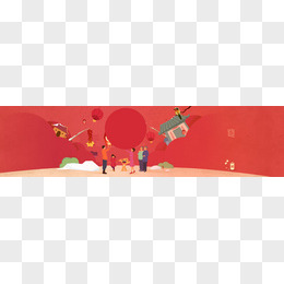 红色卡通新年风景