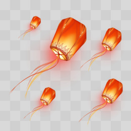 手绘卡通祈祷漂浮的孔明灯免抠素材