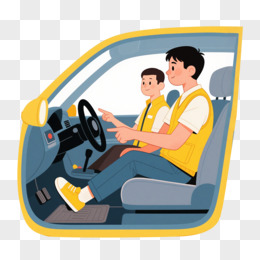 卡通插画风学驾驶学开车考驾照学车练车学习开车驾考免抠元素