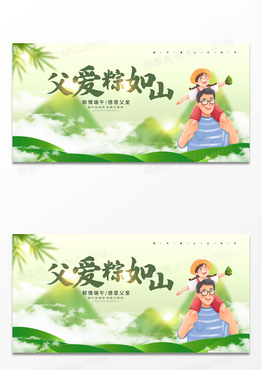 绿色卡通父爱粽如山端午节宣传展板设计端午节遇上父亲节