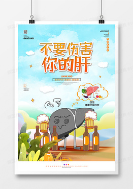 手绘卡通喝酒伤肝宣传插画免抠元素