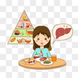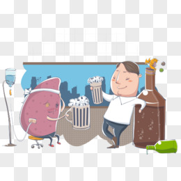 手绘卡通吃高脂肪食物伤肝宣传插画免抠元素
