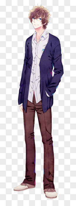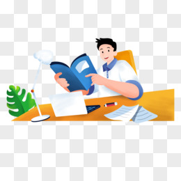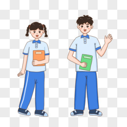 卡通手绘穿校服高中生在草坪读书免抠元素