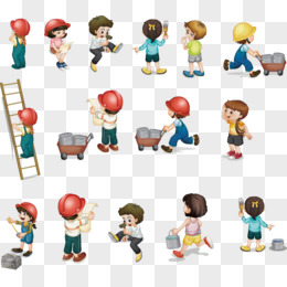 3D卡通风立体Q版建筑工人与工具箱免抠元素