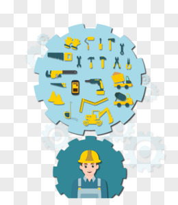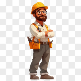 3D卡通风立体黄色建筑工人手拿锤子免抠元素