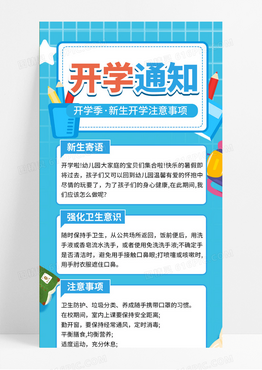 蓝色卡通风格开学通知幼儿园开学通知手机长图