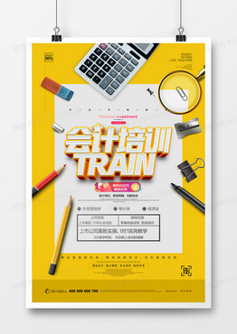 创意卡通会计培训宣传海报模板设计