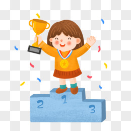 卡通手绘女孩获奖免抠元素
