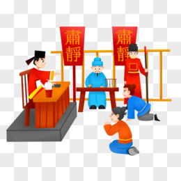 手绘插画风古代公堂县老爷元素