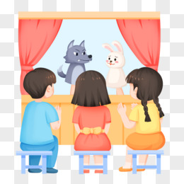 手绘插画小朋友们看木偶戏免抠素材