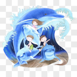 手绘卡通可爱女孩海底潜水场景免抠素材