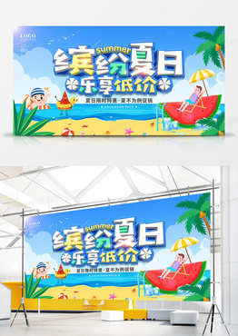 卡通风夏日促销宣传展板